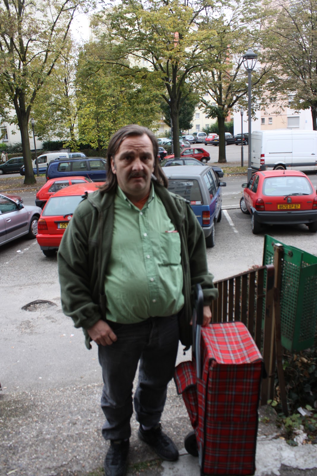 | Avec son cabas, Marcel attend devant la Plateforme, en avance sur son rendez-vous. (Photo / G.B.) |